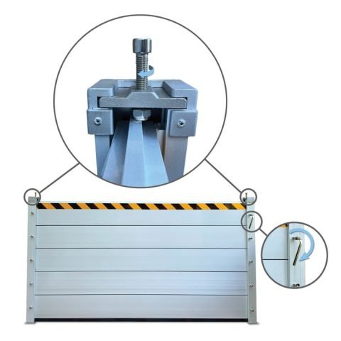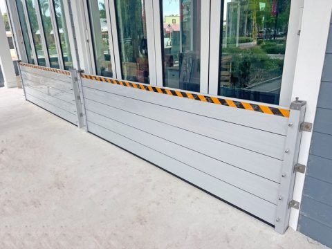 The “stop log” flood barrier is able to withstand water up to 6 feet and will protect your building, residence, or facility against all types of flooding. This flood gate system is also ideal for areas where high wind or debris is expected as the fixed posts and clamped planks are durable, rigid, and designed to handle heavy stress.