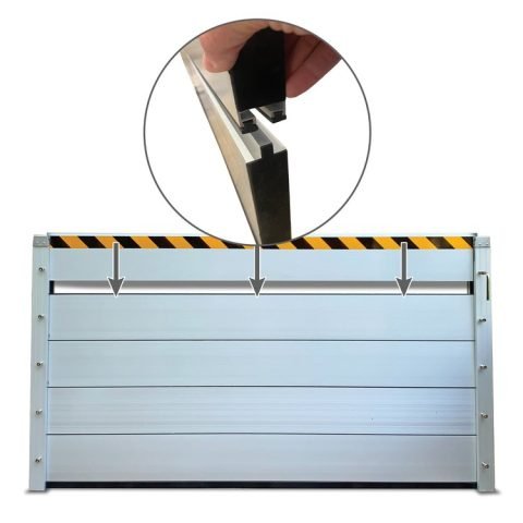 Our aluminum panel flood barrier system is a durable stop log flood barrier that enables you to protect doorways and other openings against flooding.