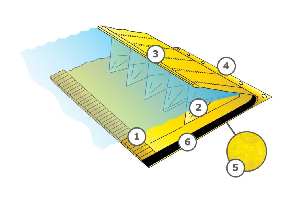 3) Flotation Section – Top Section has a layer of embedded foam to provide flotation, further assisting in the opening of the Stingray water pockets.