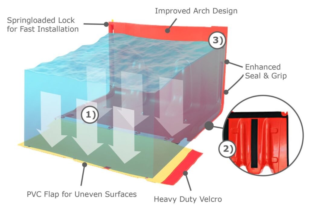 The Mayim™ flood control barrier is an easy to deploy flood control system. If you are looking for a durable, efficient, and quick dam for protection for your building or facility, the Mayim™ Flood Barrier is the solution.